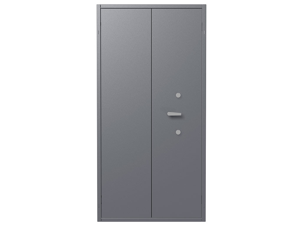<li>Комплектуются двумя ключевыми сувальдными замками класс 2 ГОСТ 5089-2011 (по 2 ключа от каждого замка в комплекте) с опечатывающими устройствами. Поворотная ручка для удобства открывания и закрывания. Левая створка двери оборудована двумя подпружиненными самозапирающимися защелками (вверх и вниз) с приводом от ручки находящейся на внутренней стороне створки двери.</li>