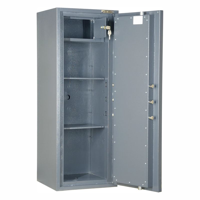 Сейф односекционный СМ2-120 предназначен для хранения бумажных документов и ценностей на сумму до 3 млн. руб. для физических лиц и до 800 тыс. руб. для юридических лиц. Сейф сертифицирован по ГОСТ Р 50862-2017 (п.4.1, табл. 1), ГОСТ Р 51113-97 (разд. 4). Класс устойчивости к взлому-II (второй). Класс огнестойкости 60Б. Сейф односекционный, оснащен двумя съемными полками и Трейзером . В двери установлен ключевой замок BORDER класс А. Для облегчения процесса открытия шкафа дверь оборудована поворотной ручкой.