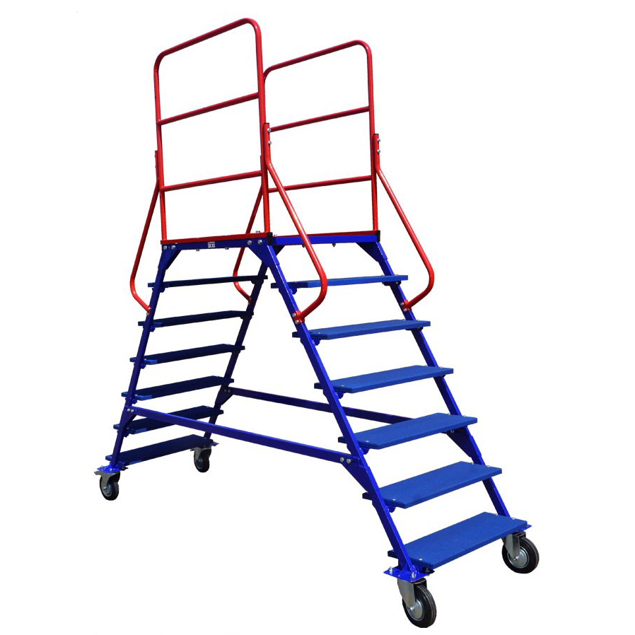 Лестница передвижная, шесть ступеней и два лестничных марша ЛР 6.2 2330х791х1613 с колесами d160мм