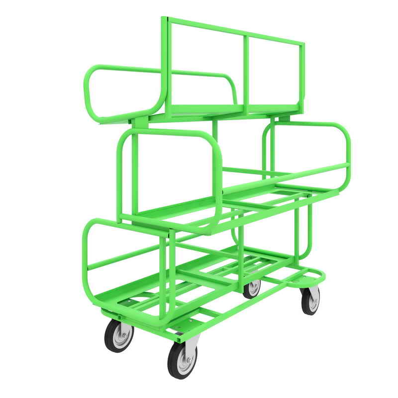 Конструкция тележки цельно-сварная. Изготовлена из труб прямоугольного и круглого сечения. Изготавливается тележка только на высокоточном оборудовании с числовым программным управлением, что обеспечивает стопроцентную повторяемость, как деталей в отдельности, так и изделия в целом.