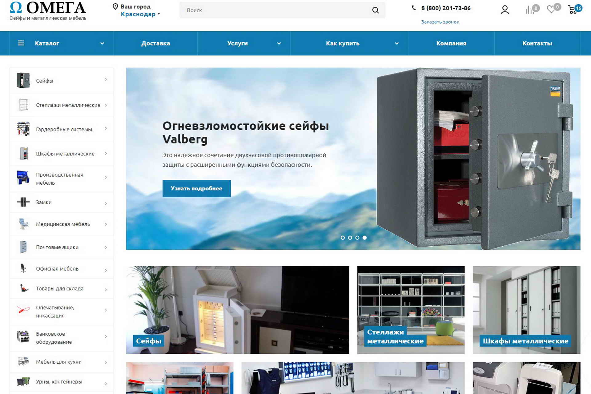 Купить качественную металлическую мебель в Сочи, Новороссийске, Краснодаре и Санкт-Петербурге можно в нашем интернет магазине Омега-сейф.рф. В каталоге большой ассортимент различной продукции - сейфы, шкафы, стеллажи, товары для офиса и склада. Бесплатный звонок: 8 (800) 201-73-86